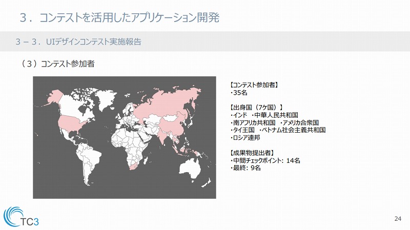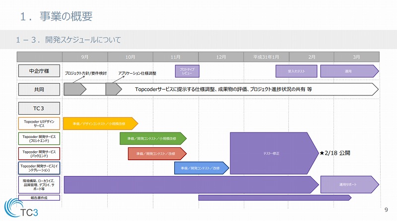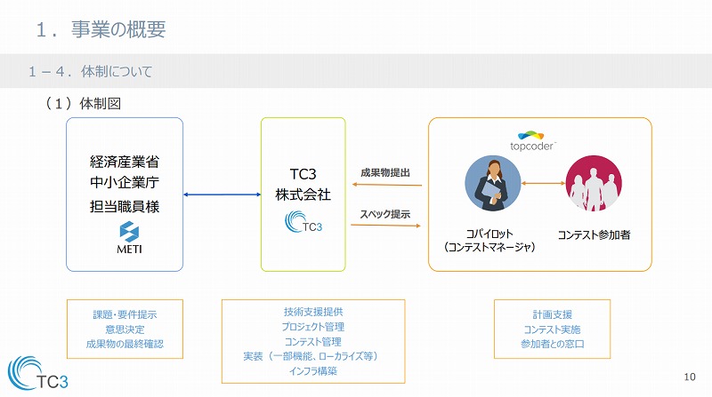 ② TC3により、Top coderサービスの管理、その成果物の統合/ローカライズ/品質管理を行う