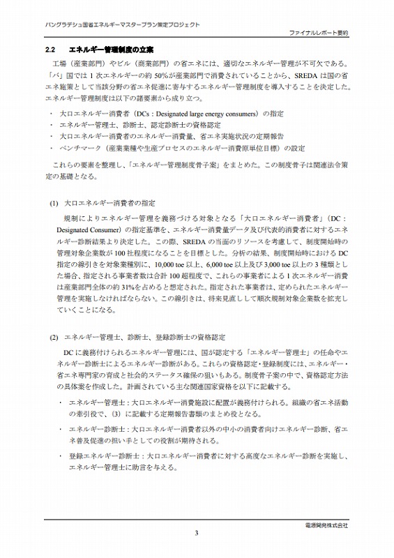 バングラデシュのエネルギー政策の詳細を知ることで、一国の省エネルギー政策のスキームの立て方から運営体制まで、国家単位のエネルギー政策の全体像が把握できます。