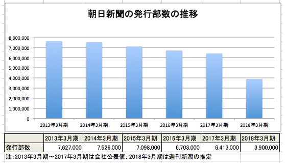 特に長らく新聞業界で大きな存在感を示していた朝日新聞の発行部数の減少は、要チェックです。企業体としては不動産収入が順調なためまだ安心ですが、世界で唯一自宅配達までしてくれる日本の新聞というビジネススキームがどういう運命を辿るのか。アマゾンに買収されたワシントンポストが黒字転換したように、海外の事例が参考になるかも知れません。