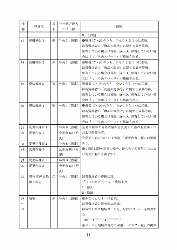 ・統一資格者情報CSV公開機能