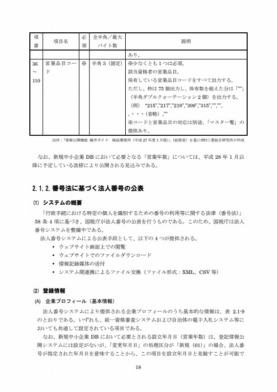 なお、新規中小企業DBにおいて必要となる「営業年数」については、平成28年1月以降に予定している改修により公開される見込みである。