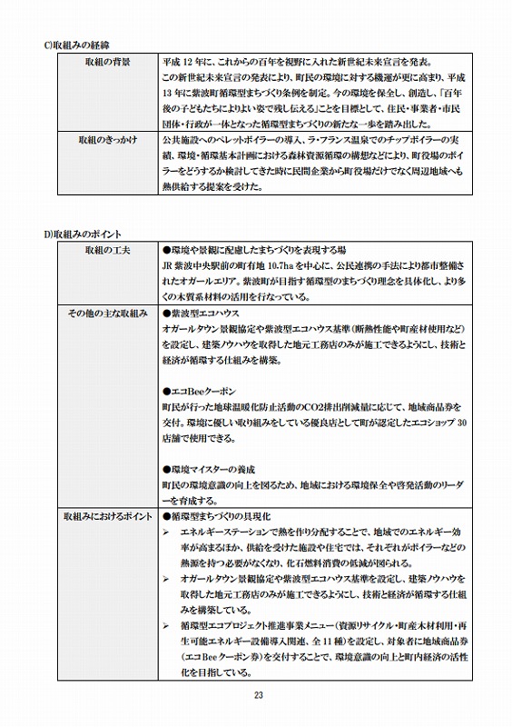 その為に、既存の取組みを参考に取組み手法やノウハウを整理し、具体的に導入を検討している地域において、民間事業者の知見等を活用しながら事業可能性を調査し、着実に実施・継続できる構想を検討する。