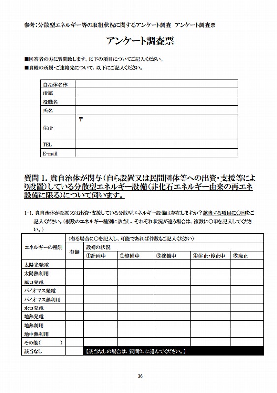 (1) 分散型エネルギー等の取組状況に関するアンケート調査の実施
