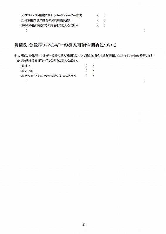 5-1.現在、分散型エネルギー設備の導入可能性について検討を行う地域を募集しております。参加を希望しますか?該当する項目”1つ”に○印をご記入ください。