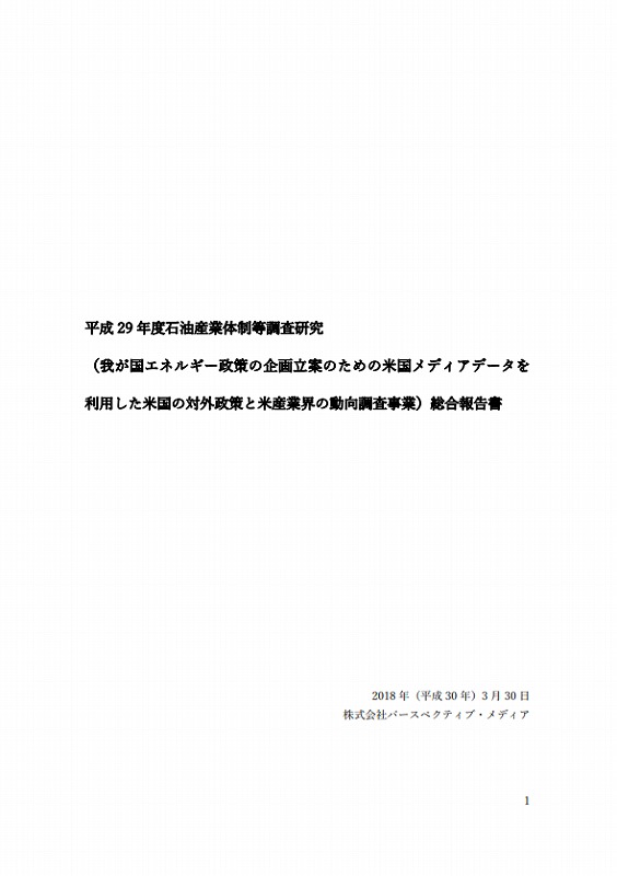 2. 『平成29年度⽯油産業体制等調査研究(我が国エネルギー政策の企画⽴案のための⽶国メディアデータを利⽤した⽶国の対外政策と⽶産業界の動向調査事業)総合報告書査』から学ぶ