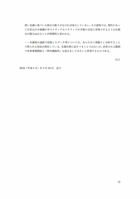 その意味では、現代にあっては官公庁の組織の中でメディアモニタリングが、⼿軽に⾃在に実現できるような仕組みが組み込めることが理想的と思われる。
