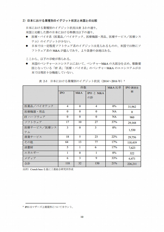 ・日本では一定程度ソフトウェア系のイグジットは見られるものの、米国では特にソフトウェア系のM&Aが盛んであり、より改善の余地はある。