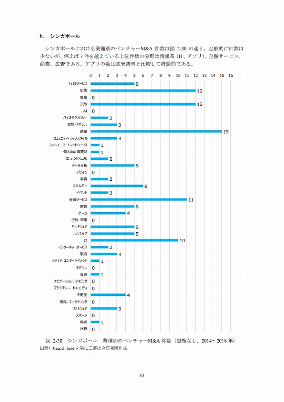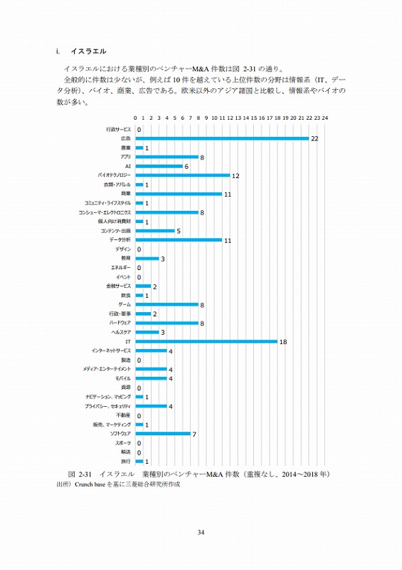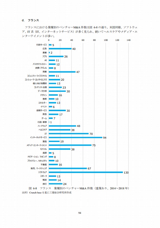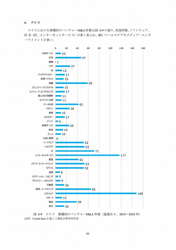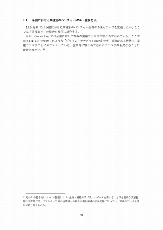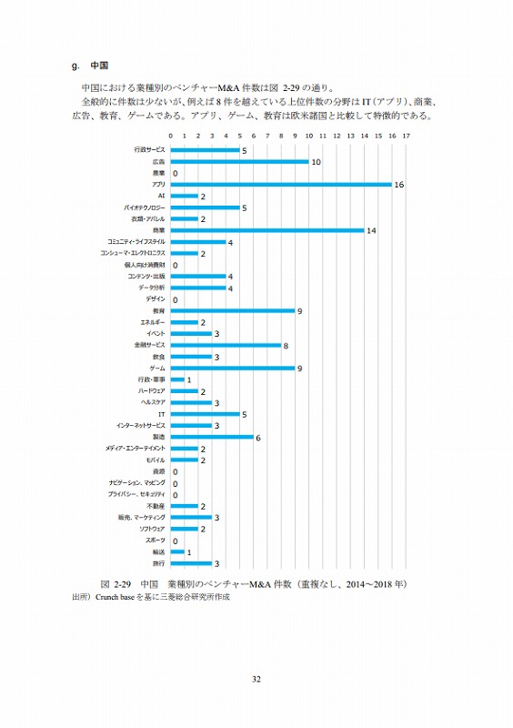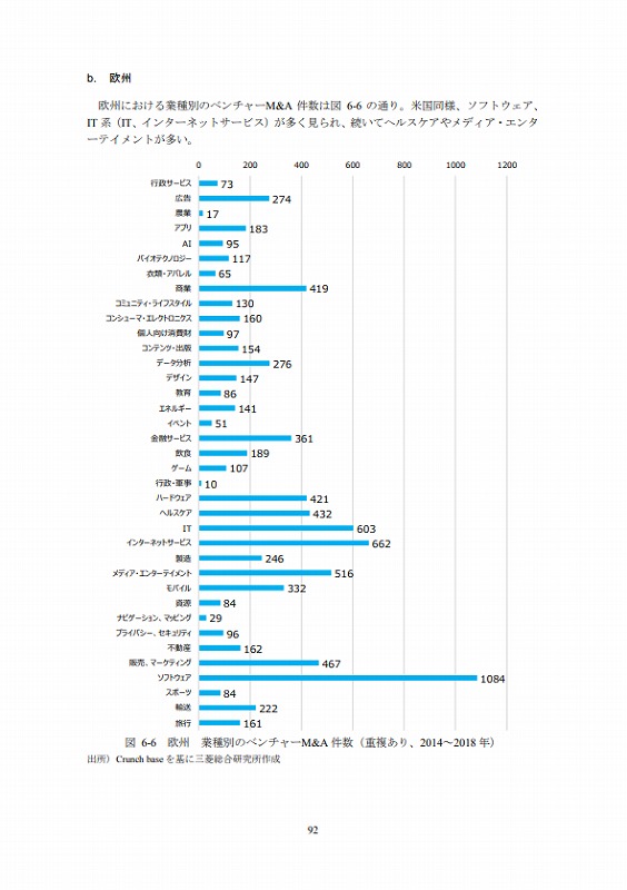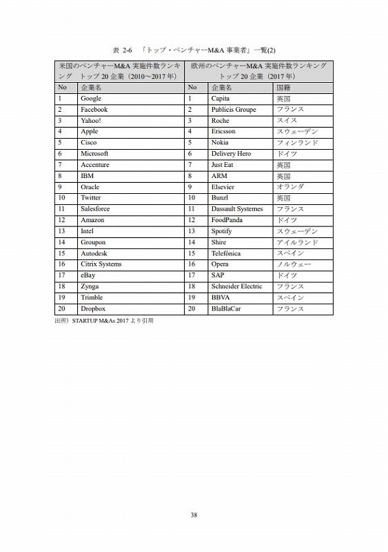 M&Aの件数については、文献ごとにM&Aとしてカウントする対象が異なる等の問題があり、データ間での接続性に課題がある。ここでは既存の文献(ベンチャーエンタープライズセンター「ベンチャー白書2017」)で日米比較のデータが有るためそれを活用しているが、後述するCrunch baseでカウントしたM&A件数とは必ずしも合致していない点は留意されたい。(ただし、数字のオーダー感では大きな差はない。)